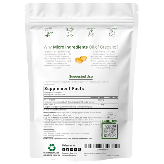 Micro Ingredients Aceite de Oregano Con Comino Negro 300 Softgels